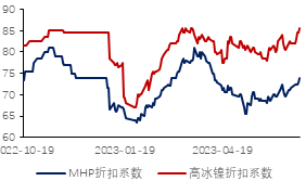 上游原料端,由于硫酸镍产量持续下滑,原料端对新能源中间品的进口需求减弱,从前五月的进口数据看,一二季度新能源中间品的季度进口量级皆低于去年四季度,其结果一是印尼高冰镍实际产出低于预期;二是中间品供给的相对过剩使得高冰镍和MHP的折扣系数偏低,形成与硫酸镍价格的负反馈;第三,中间品供给充足在原料端形成对镍豆镍粉的挤出效应,镍豆/粉在国内的工业应用空间大幅挤压,除二级镍外在一级镍市场还受俄镍和电积镍挤兑。