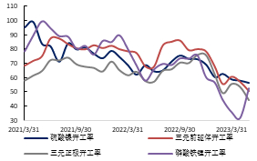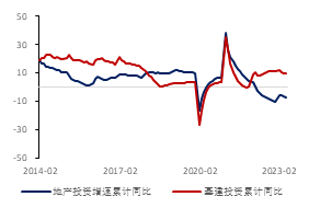 基建投资方面,2023年1-5月基建投资完成额(不含电力)为5.78万亿元,同比增长7.50%,整体仍处较高水平,“稳字当头、稳中求进”仍为发展主基调,宏观经济增速存在下行压力,基建成为经济“逆周期”调节的重要发力点,政策、资金、项目加码放量助力基建高位运行。
