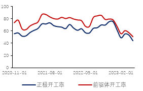 除了上游原料端供给宽松和硫酸镍产能过剩外,三元电池中间环节的前驱体和正极,以及下游电池整装环节皆因产业链的快速扩张导致产能阶段性过剩。2023 年新能源汽车全产业链产能过剩相对确定,也逐步被市场定价为共识。上半年全产业链集体去库,使得前驱体、正极以及电池企业产量皆不及预期。1-5月国内三元电池产量78.8Gwh,同比+22.0%;1-5月国内装车量38.9Gwh,同比甚至减少2.9%;三元前驱体及正极产量分别为30.09万吨和21.67万吨,同比分别增长2.86%和11.35%,开工率逐级回落到50%左右。