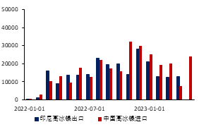 图表 16高冰镍印尼出口及国内进口情况(镍金属吨)