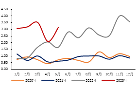 海外市场受欧美加息周期影响需求总体偏弱,叠加欧美去库阶段采购方以销定产;其中欧洲市场汽车和建筑方面的不锈钢需求下滑,白色家电消费转弱。一季度不锈钢出口至欧美、东南亚、印度等国订单同比环比均大幅减少,一方面是欧美发达国家本身需求走弱,另一方面是印度和东南亚对中国订单有分流,而二季度出口恢复较快,是由于国内不锈钢价格持续走跌,不锈钢出口有较大的比价优势。 展望H2,欧美主要经济体大幅加息将逐步反噬经济需求,海外下半年需求较上半年更为悲观基准假设下,下半年的不锈钢出口需求不容乐观。