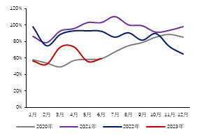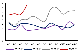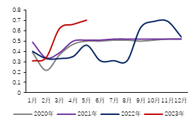 地产方面,目前竣工底部回升趋势确定,预计将带动后续消费建材需求恢复。1-5月份,房屋竣工面积27826万平方米,同比上升19.6%,环比1-4月增速上升0.8个百分点,2023年以来持续改善,竣工端数据的高增支撑产业链的复苏。近期市场地产基本面持续下行,地产政策放松的预期正在逐步加强,供给侧政策加码的概率较需求端更大,叠加 “保交楼”政策的持续推进,预计竣工端将维持高速增长。