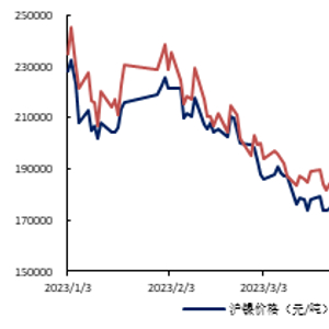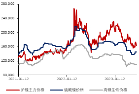 年初青山电积镍项目正式投产消息,引发了镍价大幅回调,2023年国内新投或扩建电积镍产能达14.5万吨,加速供给端结构性矛盾从电镍现货偏紧向全面过剩过渡,二级镍在不锈钢和新能源行业持续过剩局面,通过NPI-高冰镍-硫酸镍-电积镍路径传导到电镍市场,实现了镍金属内部传导均衡。