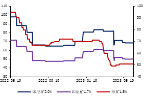 图表 70 印尼与菲律宾矿价(美元/湿吨)