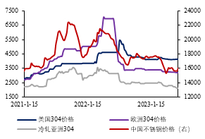 需求端看,不锈钢和国内新能源产能均已出现过剩,产量增长关键在于需求释放,2023年新能源汽车国内需求增速有所放缓,海外市场迎来爆发,全球销量仍有望实现27%增速超1370万辆;而不锈钢行业得益于中国的经济复苏,在基建加快投资稳增长,房地产市场“保交楼”及相关政策提振下,全年有望实现约3.5%的产出增量,合金电镀等领域需求则稳中略升。