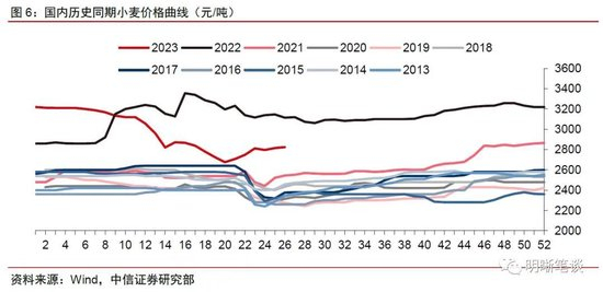 预计小麦价格或继续上行。IMF统计,过去5次的厄尔尼诺现象期间芝商所小麦价格平均涨10%。而当前北美的干旱、俄罗斯的连续降雨又让小麦生长良率不高,另外受到黑海谷物出口协定的不确定性、乌克兰农作物种植面积降低等因素影响,预计下半年国际小麦价格或呈现上行趋势。
