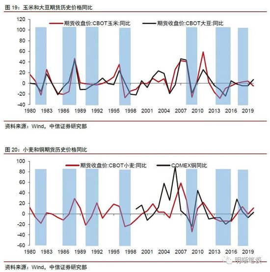 厄尔尼诺影响全球气温、降水分布,从而影响大宗商品价格。根据历史经验,厄尔尼诺期间全球大宗商品价格普遍上涨,包括基本金属、原油、粮食作物、蔗糖、咖啡、棕榈油、天然橡胶等。从粮食作物看,小麦价格受到抬升作用,玉米、大豆由于生产受益于厄尔尼诺而价格承压。结合当前的粮食价格走势,我们预计下半年小麦价格有上行空间,而玉米、大豆价格承压。
