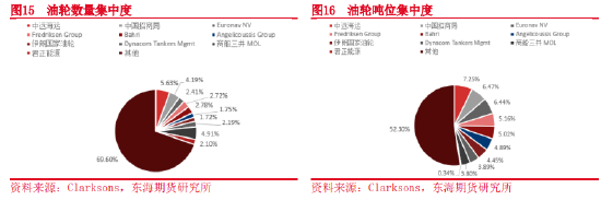 在油轮航运市场上,前十大航运公司以972艘干散货船占据市场船舶数量的30.4%;相应的吨位达到1.46亿DWT,占市场总载重吨的47.7%。
