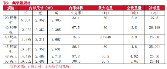 Ø 集装箱航运。集装箱运输的物品包括家具建筑类、纺织服装类、工业半成品成品等,根据运输货物的不同,集装箱可细分为普通干货集装箱、散货集装箱、冷冻集装箱等十个小类;集装箱船因其运载能力的不同而分为支线型、巴拿马型、新巴拿马型、超巴拿马型四类,且分布在不同的航线上;集装箱航线主要包括东西航线、南北航线、洲内航线三大类,其中东西航线为主干航线。集装箱运输为班轮运输,运费包括基本运费、附加费两大部分;集装箱运价指数方面,主要参考的国内指数有CCFI、SCFI,海外指数包括WCI、FBX。市场集中度较干散货航运、油轮航运更高,前十大公司的船舶数量、载重吨分别占到市场的47.8%、65%。