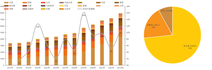 14年亚洲韩国、新加坡等国进入一轮投产高峰。