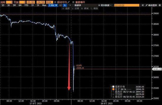 今天凌晨,加密货币短线暴跌,近一小时全网爆仓量飙升至6.5亿美元(约47.5亿元)。比特币短线下挫1400美元,最低至25275美元/枚,日内跌幅一度扩大至7%。