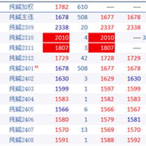 截至下午2点08份发稿时,纯碱主力合约2401报1676元/吨,涨幅5.54%,近月合约2310报2010元/吨,涨幅8.01%,近月2311报1807元/吨,涨幅8.01%。