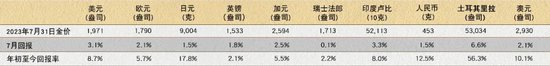 表1:7月,除以瑞士法郎计价的金价环比持平外,以其他货币计价的金价均有所上涨
