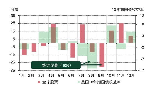 图3:8月国债收益率下降,9月股票下跌