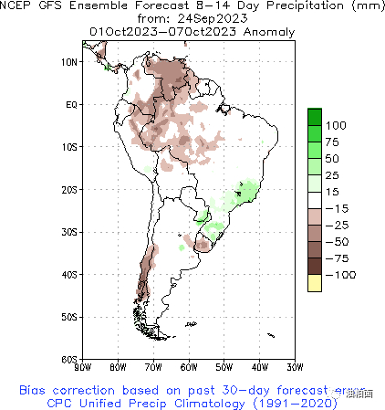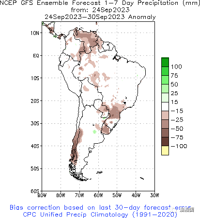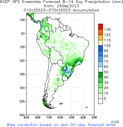哥伦比亚大学发布了最新的IRI模型,显示巴西北部的天气模式持续到年底,巴西南部的春季潮湿。我们必须每周对此进行监测,因为我们还处于种植季节的早期。马托格罗索的农民通常希望在10月初种植。然而,如果我们到了10月初,干旱预测保持不变,市场应该会开始注意到这一点。