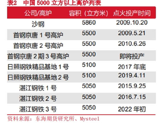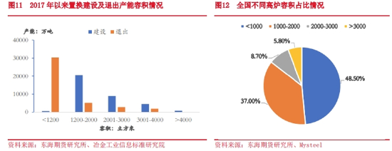 煤焦资源也是一样,理论上说,450立方的高炉要求焦炭的CSR强度在55左右,该强度焦炭中主焦煤的配比在在20%左右;而3000立方以上的高炉则要求焦炭的CSR强度在63左右。该强度焦炭中主焦煤的配比要求在50%左右。同样的粗钢产能下如果将高炉从450立方置换为3000立方,相应的主焦煤需求可能会增加30%左右。