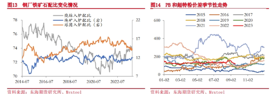 虽然钢厂也会因利润变化调整原料需求结构,如2022年下半年以及2023年6-9月,钢厂利润持续压缩,球团矿和块矿配比整体呈现下行趋势,铁矿石高低品价差也降至相对低位。但高炉大型化背景下,原料需求品质整体提升的趋势不会改变。