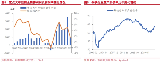 但2018年9月之后,置换产能开始进入投放阶段,粗钢产量连续创出新高;2019年之后又出现了淡水河谷溃坝,之后2020年因为疫情的影响,铁矿石供应又出现了阶段性收缩,多因素叠加导致原料价格大幅上涨,钢厂利润进入压缩周期。2021年因政策重心从去产能转向去产量,钢厂利润出现了阶段性扩张,但当年10月钢材需求基本见顶,加上之后的俄乌战争导致原料供应出现明显收缩,所以钢厂利润整体还是呈现下行趋势的。