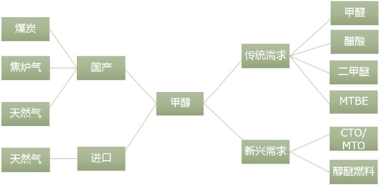 近年来,甲醇制烯烃技术发展势头强劲,成为甲醇重要的下游需求。此外,一碳化学(C1化学)得到发展,由甲醇出发合成乙二醇、乙醛、乙醇等工艺路线(现多由乙烯出发制得)日益受到关注。