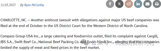 要是看美国的产业新闻会发现:美国牛肉四巨头以及鸡肉生产商,总是时不时会被控诉操控价格。