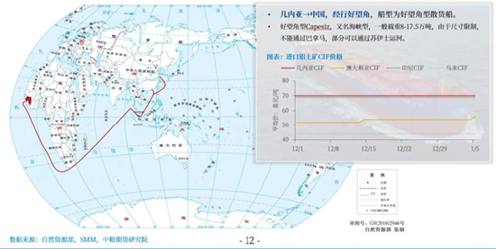 几内亚→中国,经行好望角,船型为好望角型散货船。