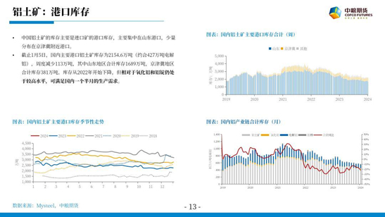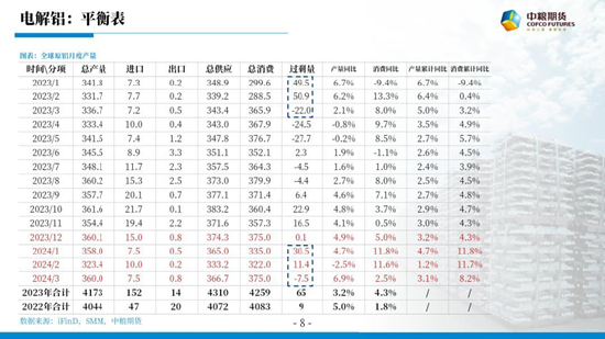 平衡表方面,预计1-2月春节前后,铝锭累库的幅度小于2023年,市场可能在累库时提前交易后续的旺季预期,出现累库涨价现象。