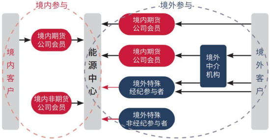 注:黑色箭头表示交易、结算、交割。红色箭头表示直接入场交易,但境外特殊参与者需通过境内期货公司会员进行结算、交割。