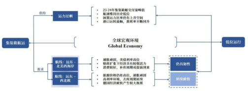 由于本报告期限为今年第四以及明年第一季度,正好覆盖集装箱航运市场的淡季(1月在中国春节的影响下有集中出货潮),且在欧美宏观经济整体弱势的预期下,市场的供强需弱几成定局,运价很难有较大起色,维持低位运行。然而需要注意的是,欧洲和美国需求端在今年前三季度的强弱分化表现很可能将会于接下来的时间内延续,即美线运价相比欧线运价依旧会展现出较强的韧性。