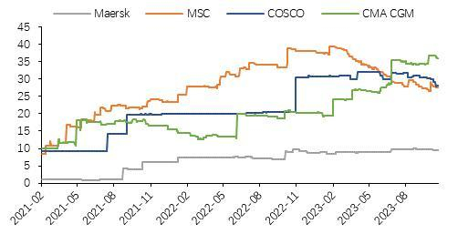 图6:班轮巨头手持订单/运力(%)