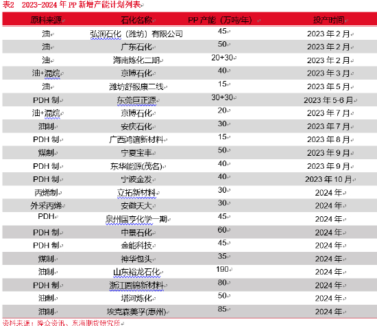 - 聚丙烯产能投放情况