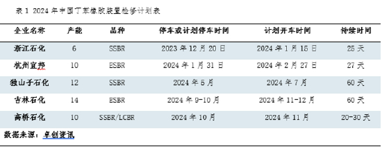 丁苯橡胶/顺丁橡胶:2024年部分装置检修预期对产量的影响