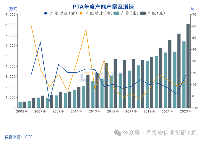 2023年PTA的价格波动区间较大,但主要来自原油、PX及宏观等外围因素,供需保持双增局面,驱动有限,PTA加工差维持表现偏弱。2024年初,PTA加工差自低位反弹,主要因检修计划增加,市场对一季度供需预期修正,但绝对价格受到需求季节性下滑及原料PX走弱拖累。长线看,我国聚酯产品已经成为全球的供应中心,新年度纺织服装市场有向好预期,可能为PTA注入上行动力。