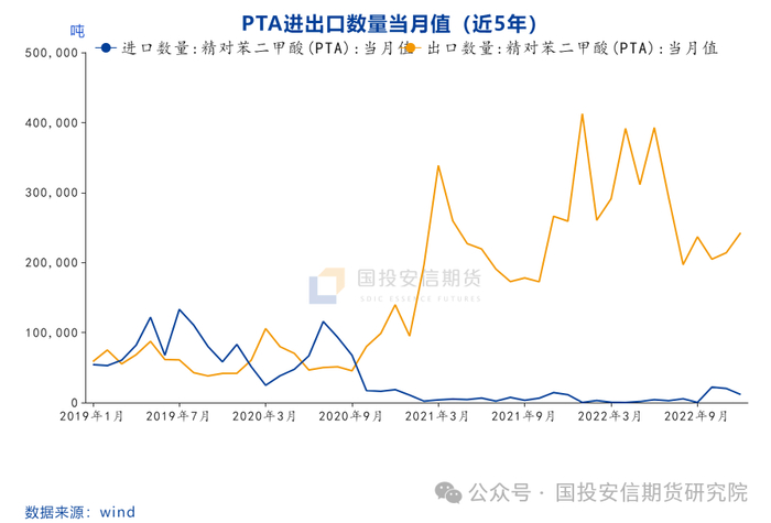 全球贸易体系在近几年遭受了重大的挑战,一体化向碎片化的转变,全球供应链重构的过程中,中国的纺织服装终端制造业向东南亚国家转移,但东南亚国家对纺织原料及上游化工中间品的自给能力不足,依旧需要依赖我国的出口,近几年我国PTA及涤纶丝的出口加速增长。新年度市场存在的重要潜在的利多是需求,尤其是海外补库周期带来的出口订单及纺织原料相关产品的出口。