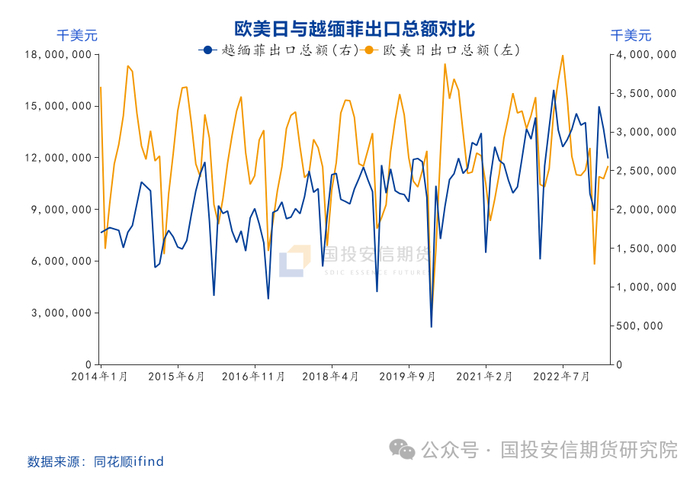 2024年我国PTA和聚酯产能将保持增长势头,供应充裕是我国聚酯产业链相关产品具有较强的出口能力的保障。虽然全球制造业正经历着逆全球化的发展,传统的纺织服装行业作为低端密集型制造业已经经历了产业向东南亚转移的过程,但“中国-东盟命运共同体”的提出和合作的深化,使中国继续处于全球纺织服装产业的中心。从我国纺织服装产品对欧美日和越缅菲的出口额对比可以看出,2017年以来,中国纺织服装产品对东南亚国家的出口逐年增长,但对传统的欧美日出口维持平稳,2023年明显下降。从未来全球聚酯板块产能的建设投产计划看,无论是PTA还是聚酯,主要的增长依旧在我国,我国将成为全球聚酯涤纶的供应中心,在海外纺织服装业的需求回升过程中,我国的纺织服装原料及制成品都将有同步增长的机会。