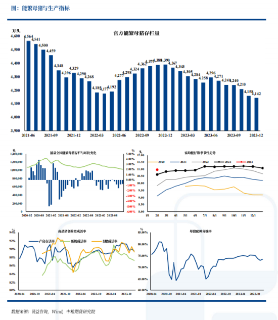 仔猪价格涨后回落,行业短期抄底和投机情绪继续增强。涌益咨询数据显示,2月集团日均计划出栏量下降0.06%,农业农村部监测,2023年1月,全国能繁母猪存栏4067万头,环比下降1.80%,同比降减6.90%。节后一周样本企业出栏体重为121.04kg,上涨0.89kg,同比下降1.26%,出栏均重后续下降为主。冻品库存环比下跌1.41%,同比下降0.84%。