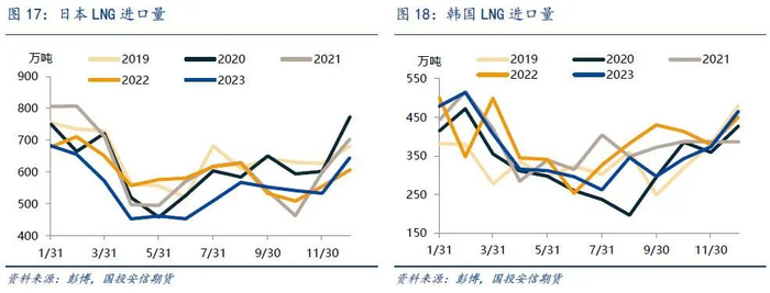 2月全球市场气温均较此前回归历史均值,城燃需求在近期有所坚挺,2月内各地去库速度略有加快。尽管基本面出现一定边际改善,但我们看到市场价格并未对此作出反应,进一步下行达到23年以来的低位水平。随着取暖季进入末尾,市场对于需求风险的担忧跌至谷底,当下库存水平的高低对市场情绪影响放大。短期来看,国际LNG供应的相对充裕使得欧洲涨价补库的动力较低,国际市场会继续维持弱势,关注持续低价后,美国进一步产量缩减和欧洲非城燃需求得到提振后,市场开始筑底的可能。