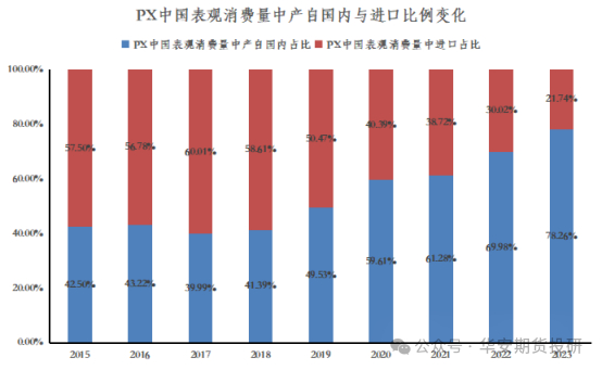 图8:PX中国表观消费量中产自国内与进口比例变化