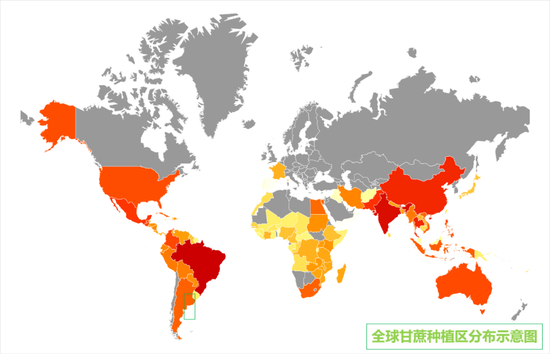 地球上热带和亚热带地区的许多国家都种植甘蔗,主要分布在南美、加勒比海、大洋洲、非洲的大多数发展中国家和少数发达地区。
