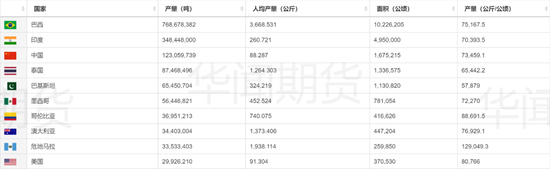 4. 巴西和印度的产量合计占世界总产量的59%。