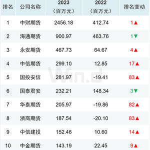 财联社整理Wind数据显示,截至2023年末,以单边趋势交易来看,黄金期货估算盈利排名中,中财期货以24.56亿元位列第一,其次为海通期货9亿元。