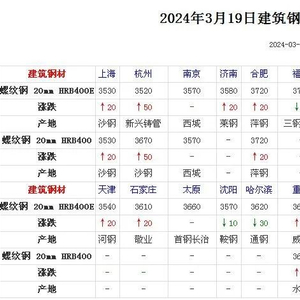 全国8个主要市场螺纹钢 20mm HRB400平均价格3574元/吨,较上个交易日上调6元/吨。