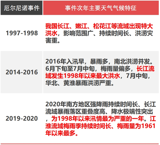 2. 厄尔尼诺次年夏季,长江流域和江南地区容易出现洪涝 (1998年和2016年长江流域特大暴雨洪涝);