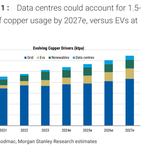 到2027年,AI数据中心对铜的需求可能占到全球铜需求的3.3%(相比之下,电动汽车的需求占比或仅为5.2%),这将推动铜价上行,并对全球铜市场产生深远影响。