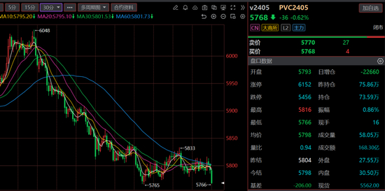 清明假期前夕,国内PVC期货主力合约2405价格显著下滑,10个交易日间跌幅近5%,逼近年内低点。
