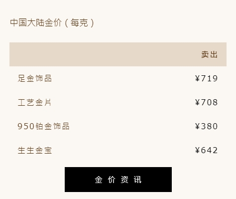 4月7日,周生生的足金饰品零售挂牌价格已经飙升到719元/克。周大福、潮宏基分别为718元/克、718元/克,相较于3日的703元/克,均上涨了15元。