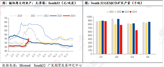 驱动因素1:South 32 澳洲锰矿销售暂停至2025年一季度,锰矿价格大涨