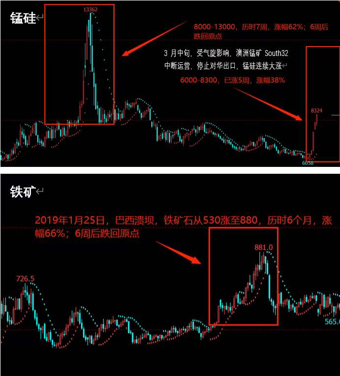 3 月热带气旋梅根导致澳大利亚格鲁特岛 GEMCO 码头和道路受损,4 月 South32 表示澳锰矿停止发货将持续 1 年,受事件影响锰价开始拉升。