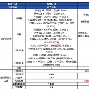 1)澳大利亚矿业巨头South32宣布暂停GEMCO的运营。停产1个月后在其季度报告中宣布继续暂停,直到该公司本财年的第三季度,即2025年1月至3月。从对我国的影响来看,影响我国进口锰矿9%-10%左右。