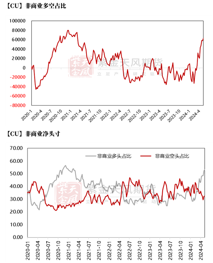 • 从5月7日的CFTC持仓来看,非商业多头与空头持仓占比分别为53.3%、32.5%,多头增加1.2%,空头增加0.2%,市场操作积性小幅增加。