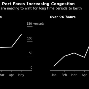 除了新加坡外,上个月,马来西亚港口的装卸量也有所增加。位于柔佛海峡西侧的丹绒帕拉帕斯港和吉隆坡附近的巴生港5月份的吞吐量均创下历史新高。与之形成对比的是,中东主要港口的吞吐量则持续出现下滑。德鲁里的数据显示,阿曼主要转运中心塞拉莱港的吞吐量在第一季度下降了17%。
